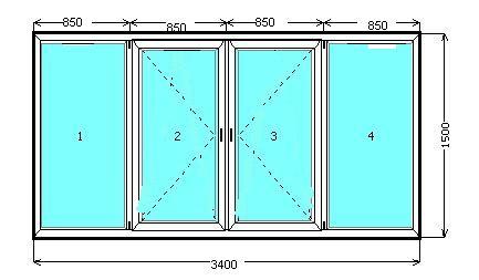 Балконне вікно Розмір 3400х1500 мм Склопакет 2-х камерний